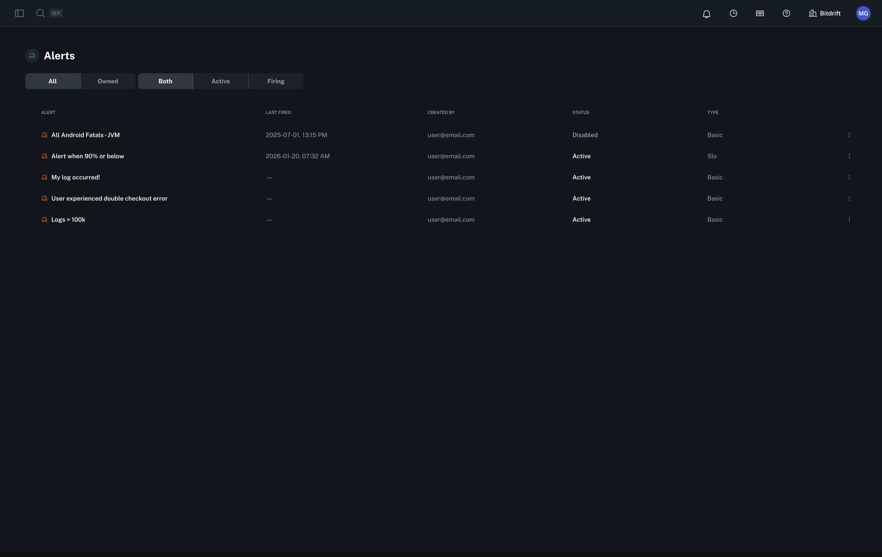 For a comprehensive walkthrough, see the Alerts Feature Guide.