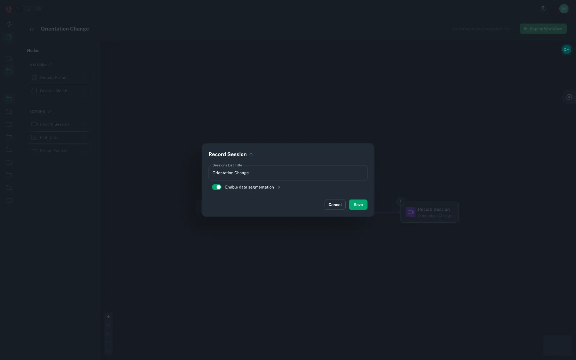 Timeout Matchers are represented visually in the workflow graph and support attaching all regular action types, such as Record Session, Plot Chart, and Create Funnel, just like any other matcher.